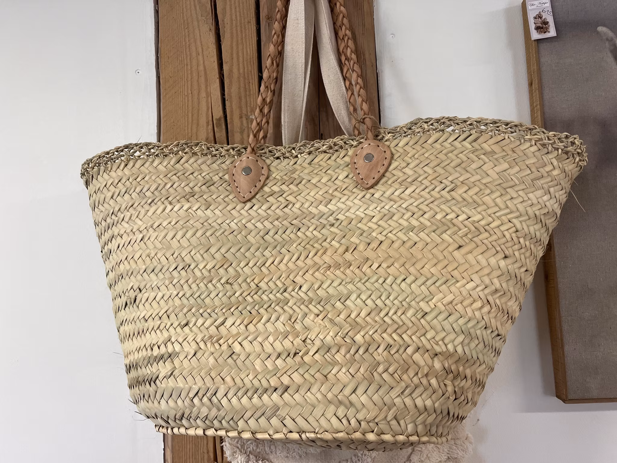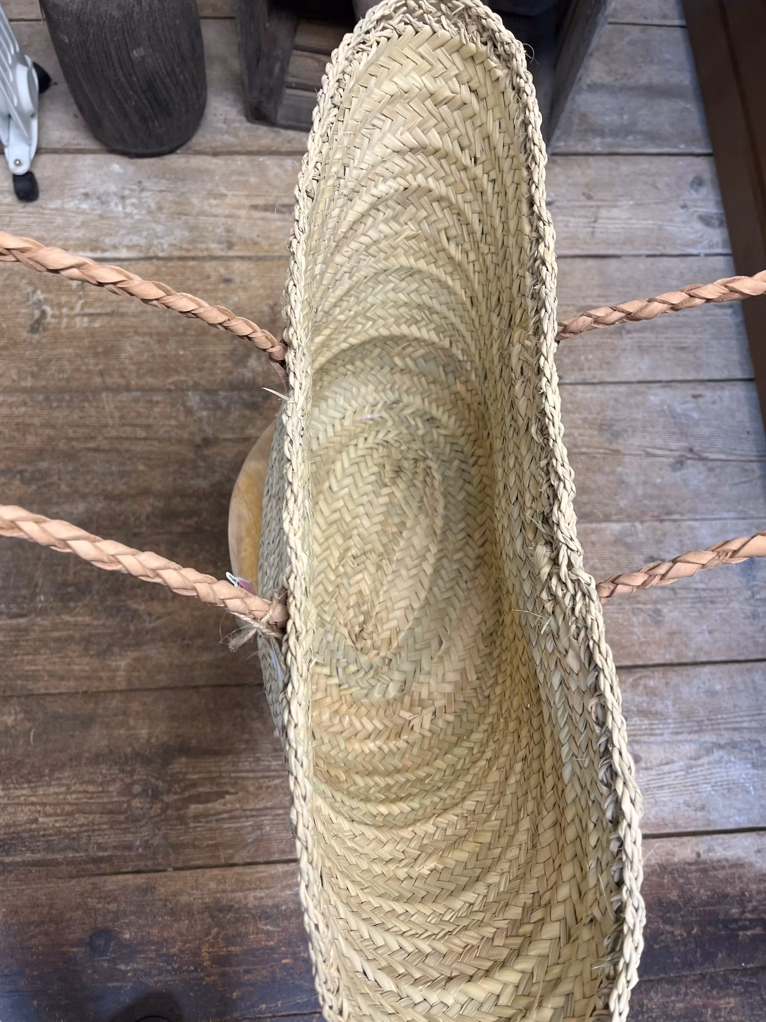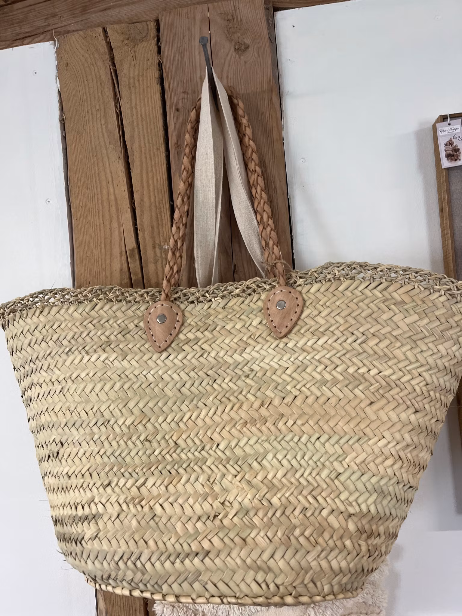 Flätad strandväska av halm, handgjord i Marocko . Höjd. 35 cmBredd. 62 cmDjup. 20 cm