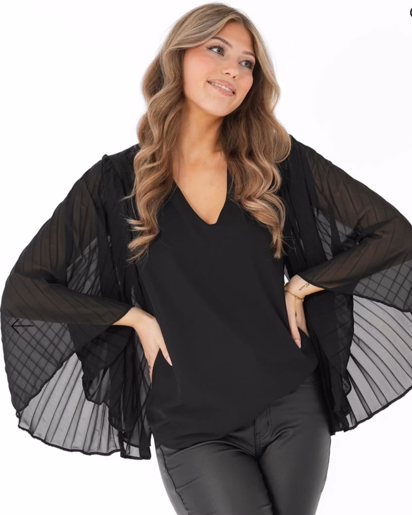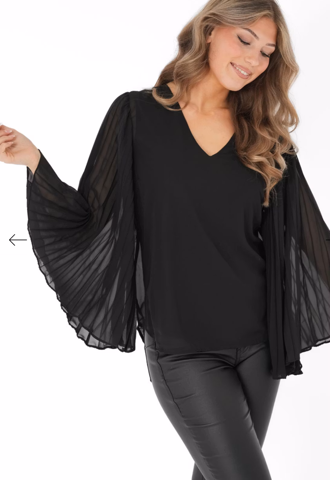 Marcella blusen är en stilren och elegant blus, perfekt för alla typer av tillställningar. Den har en vackert V-formad urringning och vida, plisserade hell