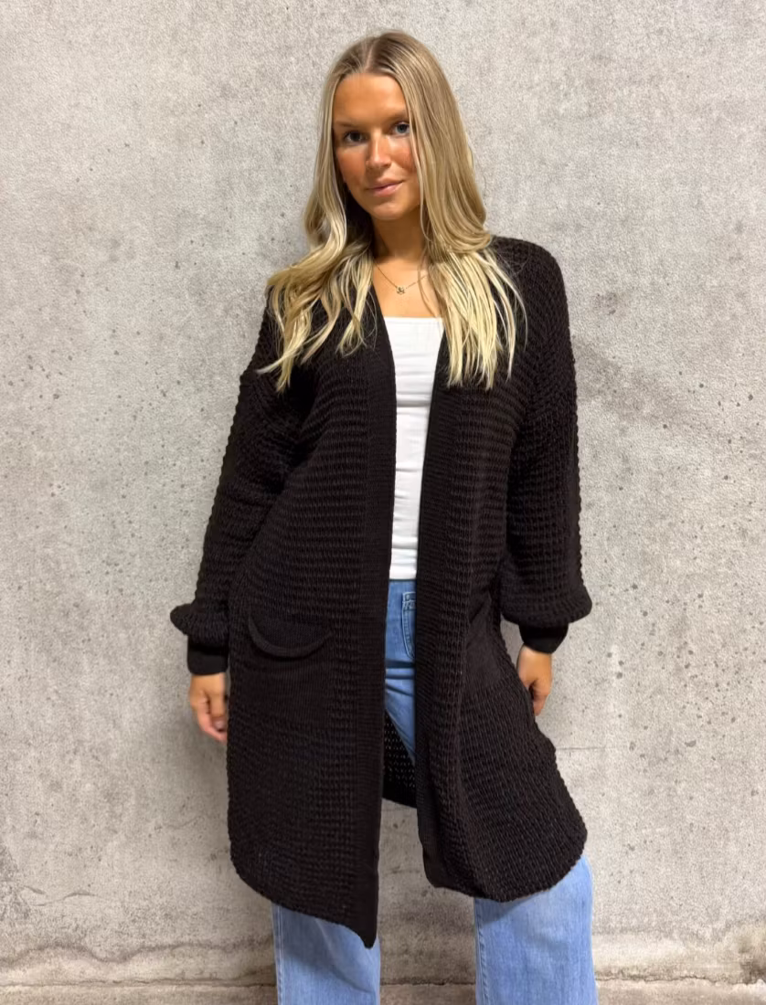 Nova stickad cardigan med fickor espresso