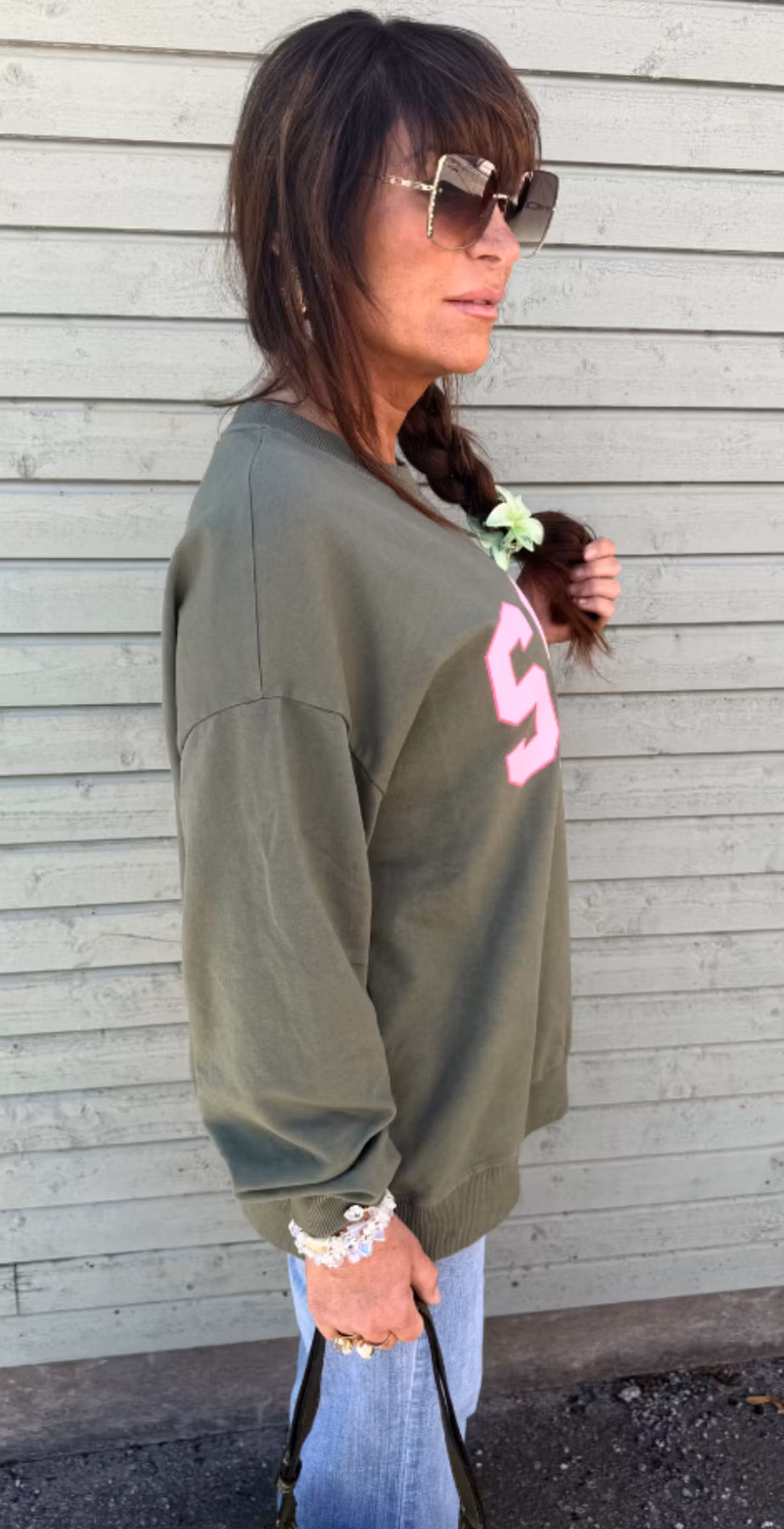 Soho collegetröja militärgrön med ros print