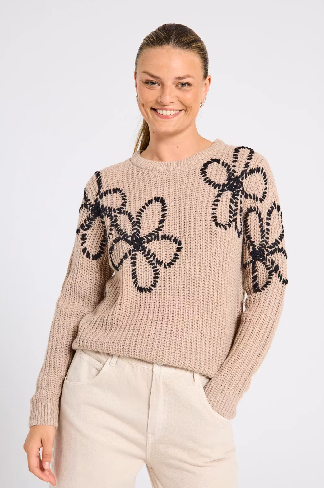 Tess mysig ull tröja med blom broderat