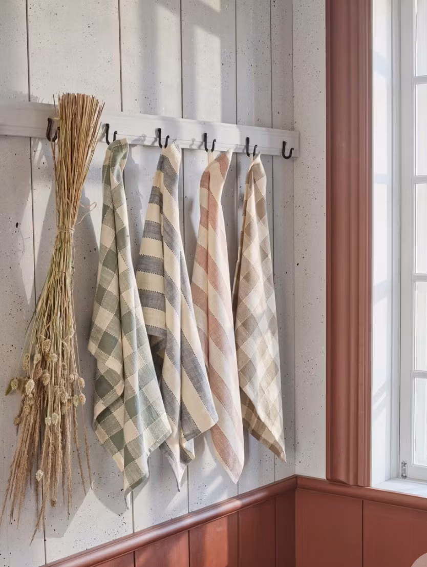 Kökshandduk i 100% ekologisk bomull med klassiskt rutigt mönster. Band i ena hörnet för upphängning.