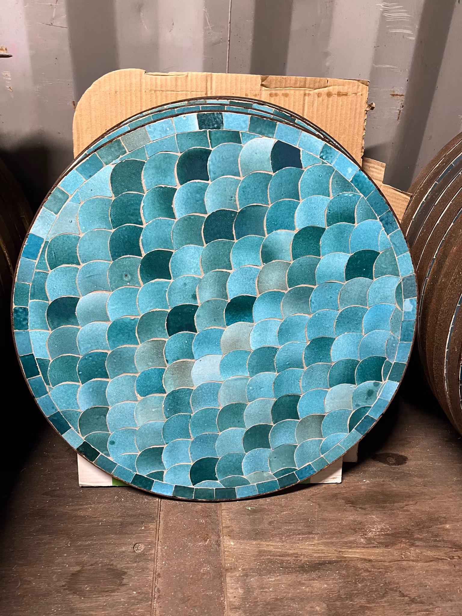 Turkost mosaik bord.Diam.60 cmHöjd.75cm