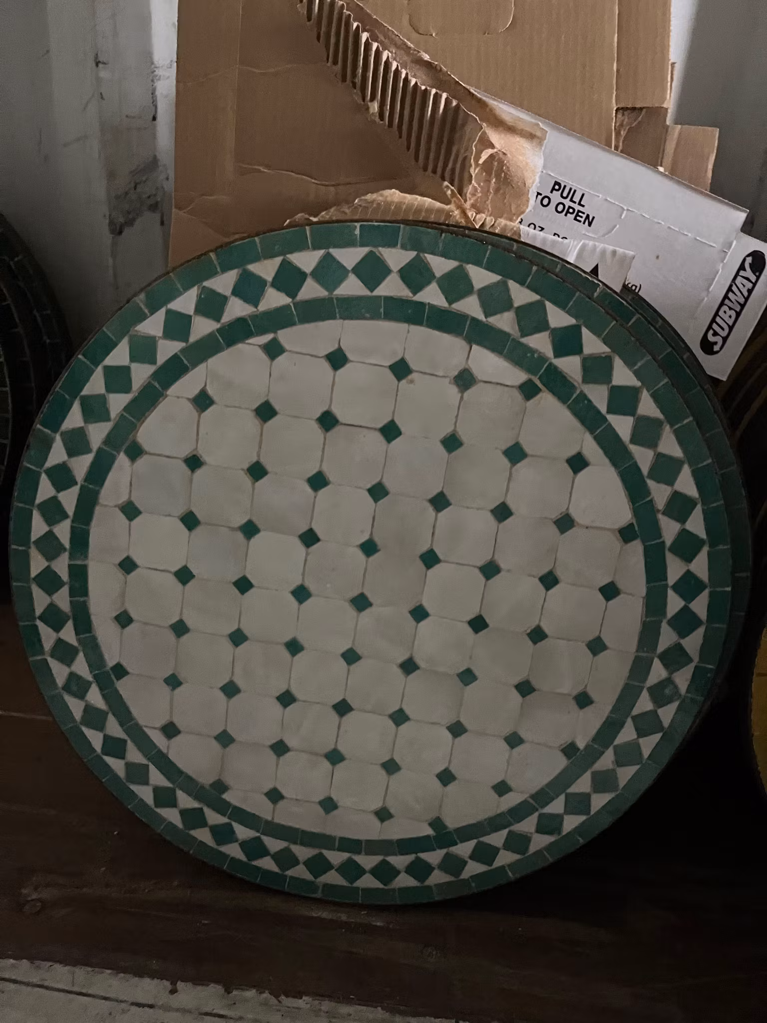 Vit/grönt mosaik bord Diam. 60 cmHöjd. 75 cmFrakt tillkommer