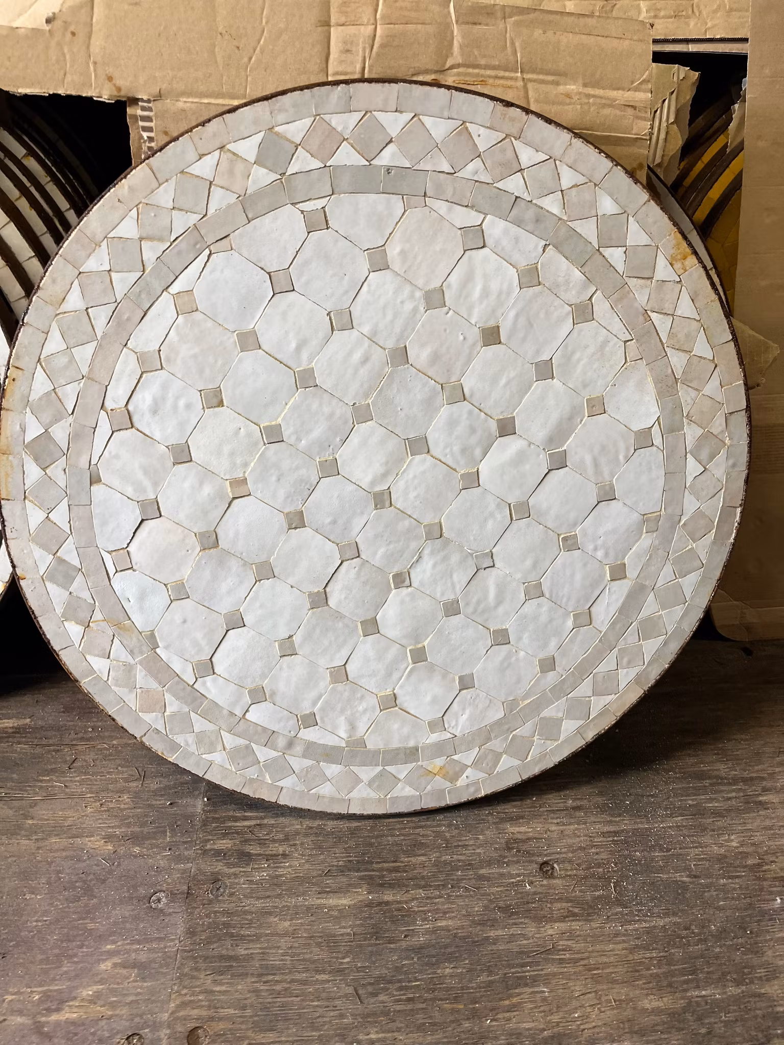 Vit/sand rutigt mosaik bordDiam.60 cmHöjd.75 cm