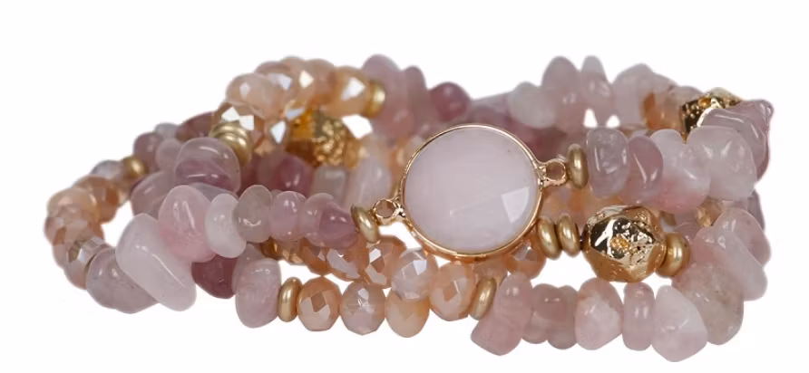 Magiskt fint elastiskt armband i olika rosa toner och guld.