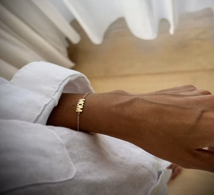 MOM armband i guldLängd; 16+3cmStorlek av MOM: 15mmMaterial: Rostfritt stål med 14K guld plätering