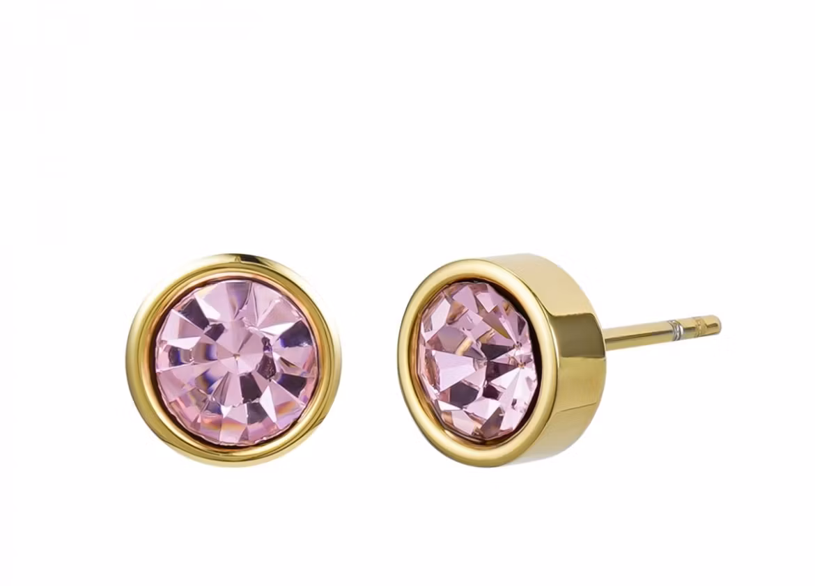 Lima Small Earring i guld med rosa stenStorlek: 8mmMaterial: Rostfritt stål med 14K guldplätering och glaskristall