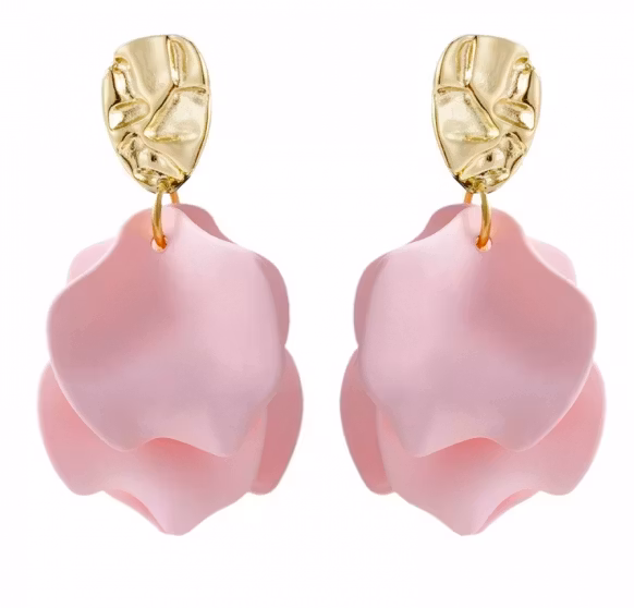 Paloma Small örhänge i guld med ljusrosa bladLängd: 50mmMaterial: Rostfritt stål med 14K guldplätering och akryl
